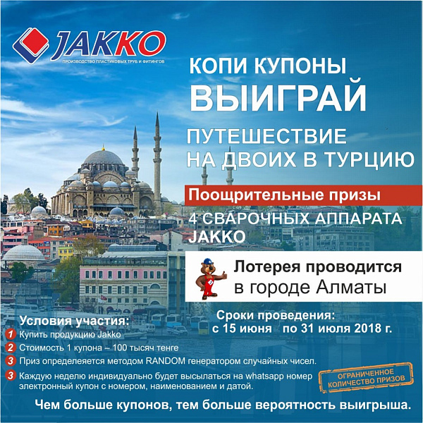 Уважаемые дилеры Жакко - рады сообщить вам, что с 15 июня по 31 июля мы проводим лотореи в городах РК.